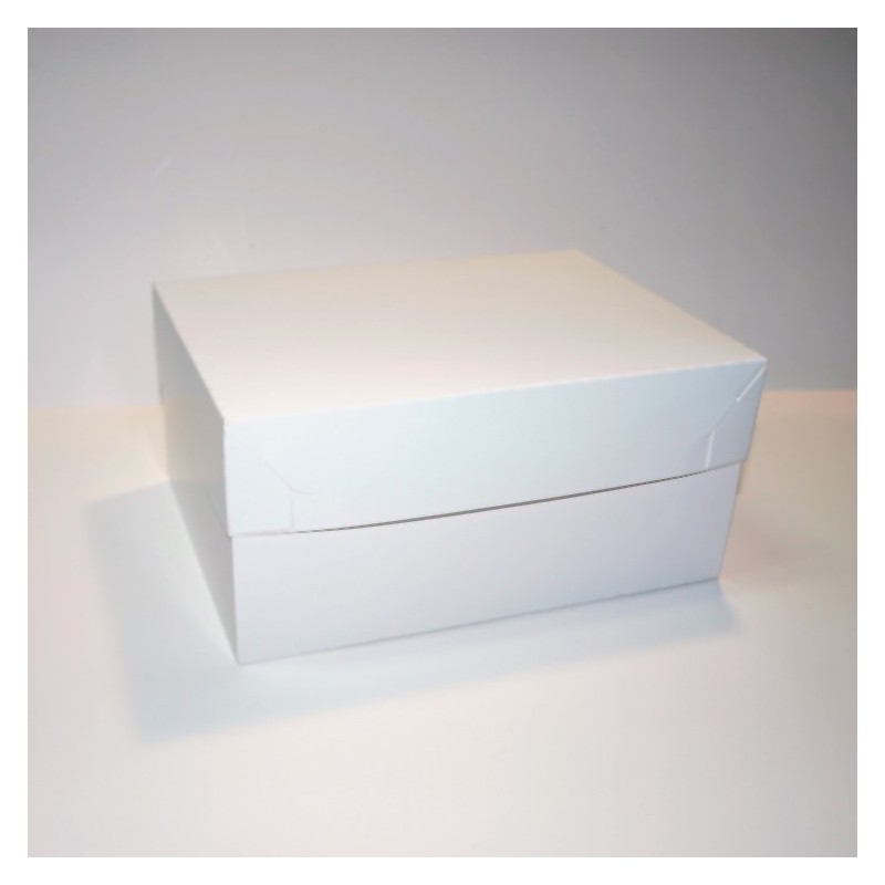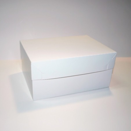 Prostokątne opakowanie na tort. Kolor biały, zamykane od góry.