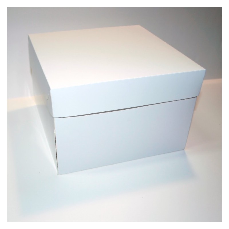 Wysokie, kwadratowe opakowanie do tortu. Kolor biały, otwierane od góry. Duży rozmiar.